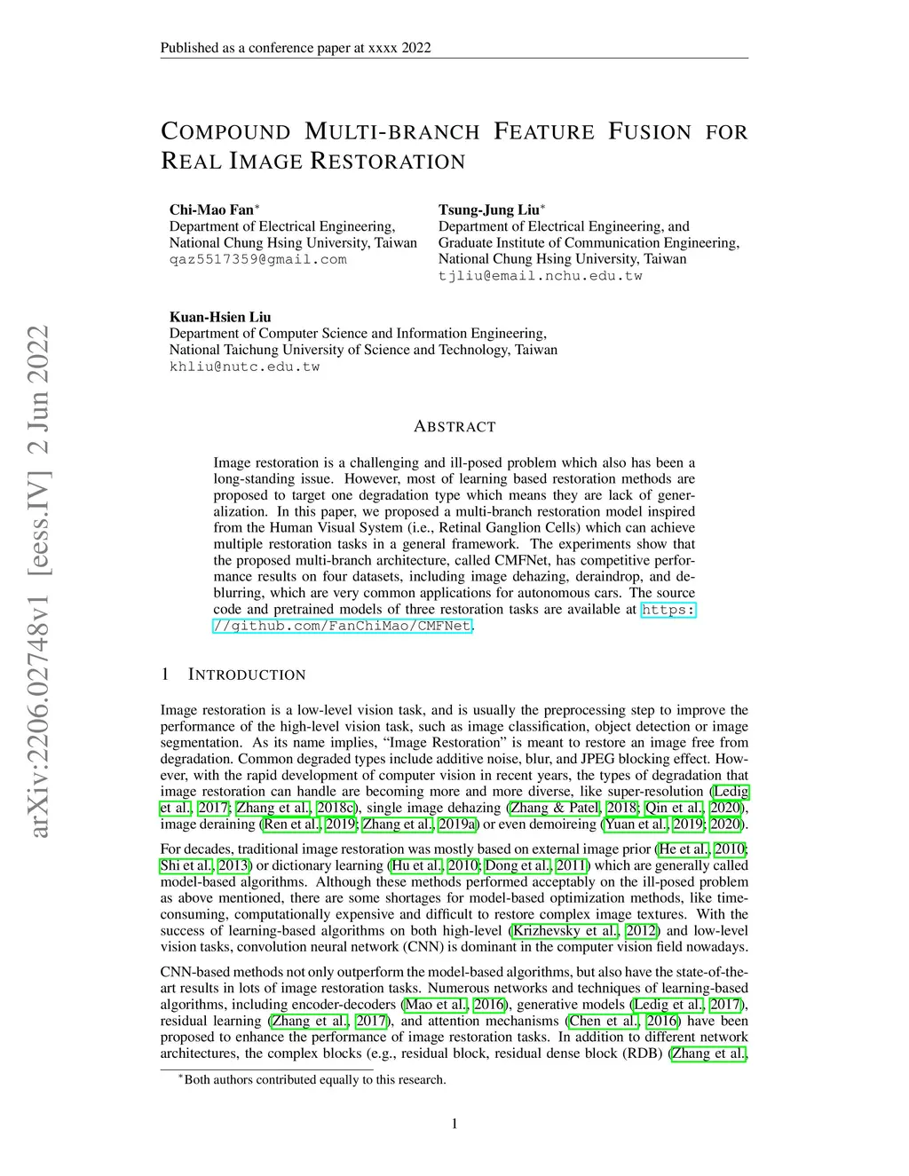 Compound Multi-branch Feature Fusion for Real Image Restoration