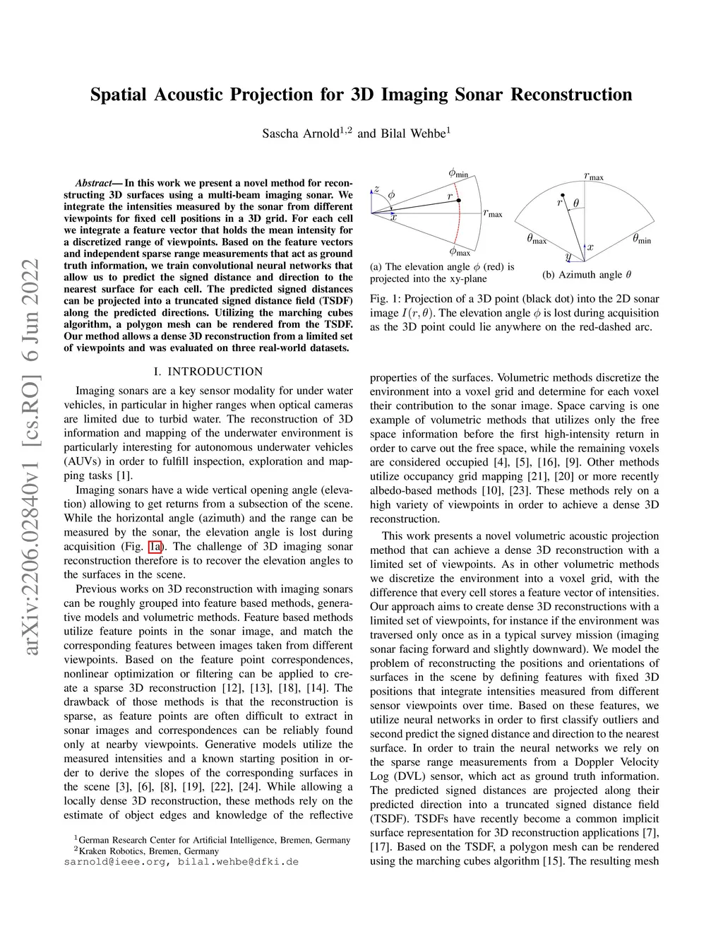 Spatial Acoustic Projection for 3D Imaging Sonar Reconstruction