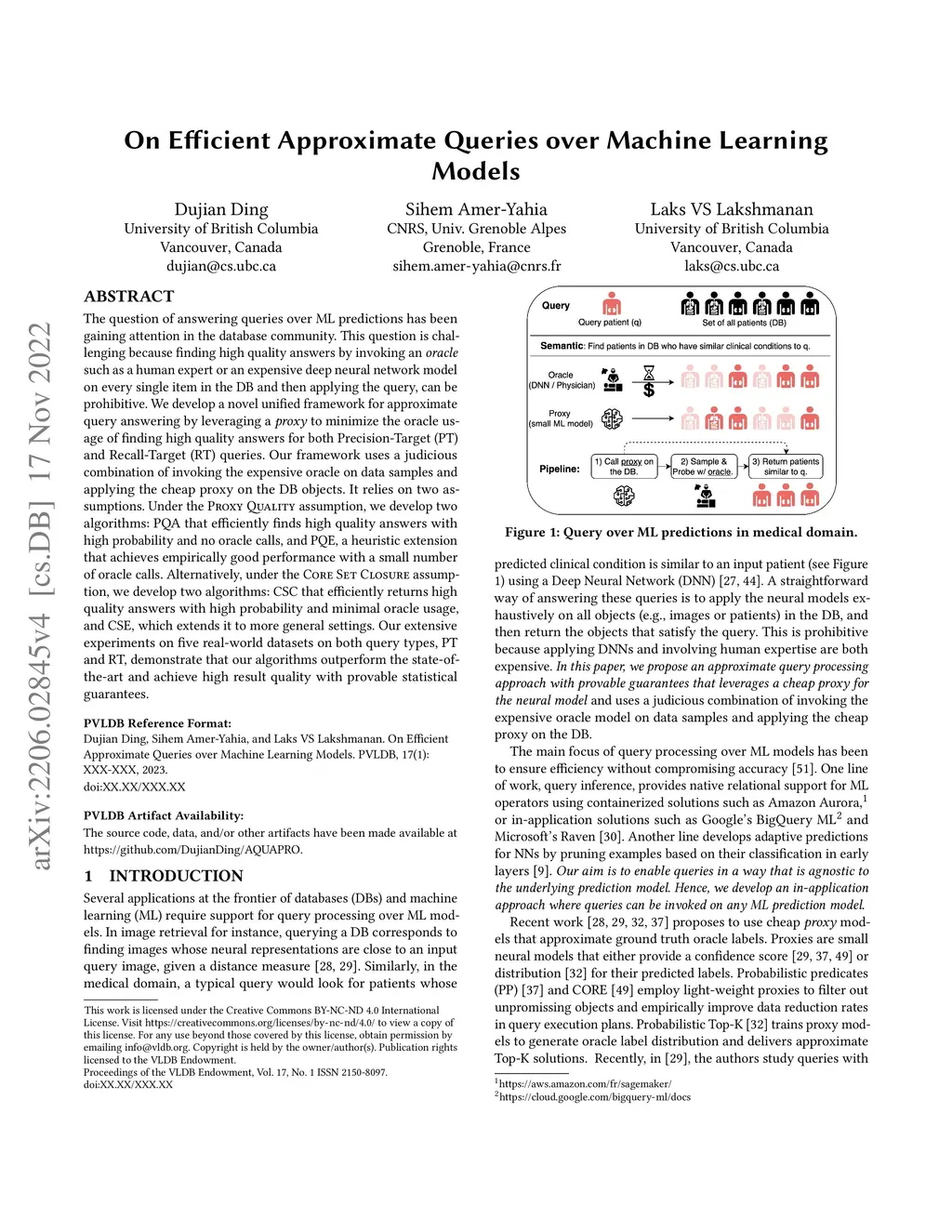 The question of answering queries over ML predictions has been gaining attention in the database community. This question is challenging because the cost of finding high quality answers corresponds to invoking an oracle such as a human expert or an expensive deep neural network model on every single item in the DB and then applying the query. We develop a novel unified framework for approximate query answering by leveraging a proxy to minimize the oracle usage of finding high quality answers for both Precision-Target (PT) and Recall-Target (RT) queries. Our framework uses a judicious combination of invoking the expensive oracle on data samples and applying the cheap proxy on the objects in the DB. It relies on two assumptions. Under the Proxy Quality assumption, proxy quality can be quantified in a probabilistic manner w.r.t. the oracle. This allows us to develop two algorithms: PQA that efficiently finds high quality answers with high probability and no oracle calls, and PQE, a heuristic extension that achieves empirically good performance with a small number of oracle calls. Alternatively, under the Core Set Closure assumption, we develop two algorithms: CSC that efficiently returns high quality answers with high probability and minimal oracle usage, and CSE, which extends it to more general settings. Our extensive experiments on five real-world datasets on both query types, PT and RT, demonstrate that our algorithms outperform the state-of-the-art and achieve high result quality with provable statistical guarantees.