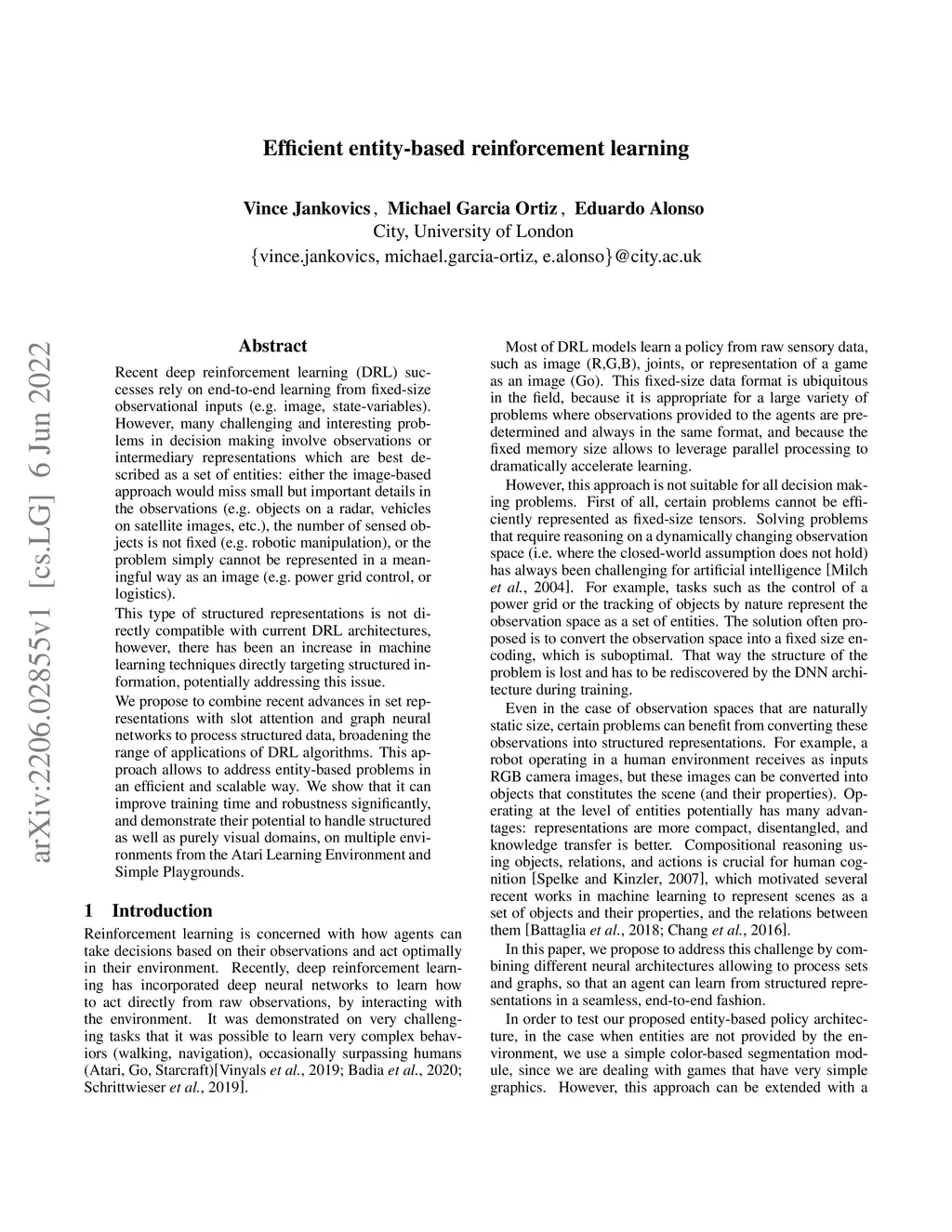 Efficient entity-based reinforcement learning