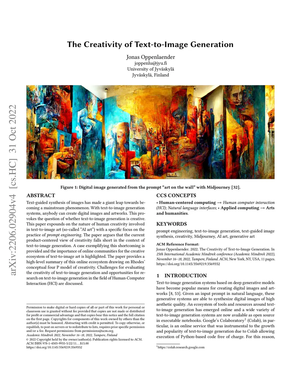 Text-guided synthesis of images has made a giant leap towards becoming a mainstream phenomenon. With text-to-image generation systems, anybody can create digital images and artworks. This provokes the question of whether text-to-image generation is creative. This paper expounds on the nature of human creativity involved in text-to-image art (so-called "AI art") with a specific focus on the practice of prompt engineering. The paper argues that the current product-centered view of creativity falls short in the context of text-to-image generation. A case exemplifying this shortcoming is provided and the importance of online communities for the creative ecosystem of text-to-image art is highlighted. The paper provides a high-level summary of this online ecosystem drawing on Rhodes' conceptual four P model of creativity. Challenges for evaluating the creativity of text-to-image generation and opportunities for research on text-to-image generation in the field of Human-Computer Interaction (HCI) are discussed.