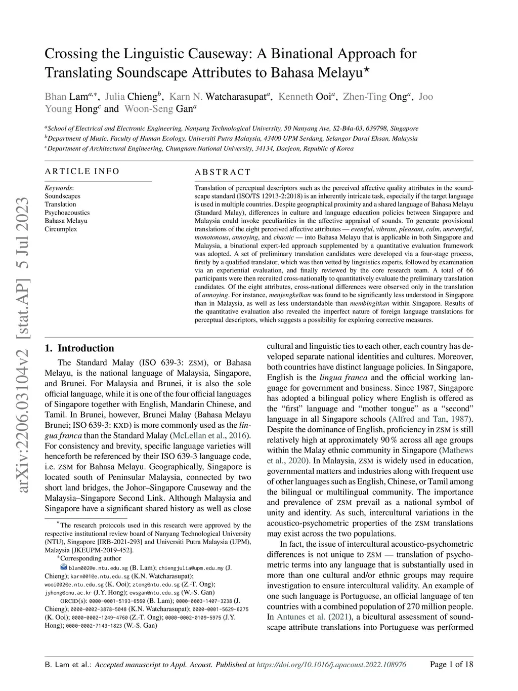 Crossing the Linguistic Causeway: A Binational Approach for Translating Soundscape Attributes to Bahasa Melayu