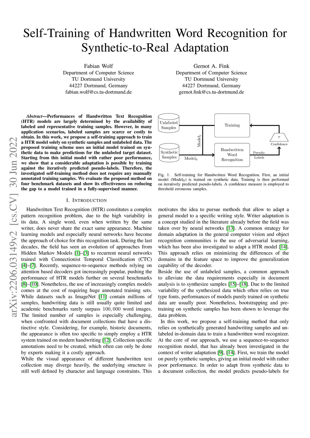 Self-Training of Handwritten Word Recognition for Synthetic-to-Real