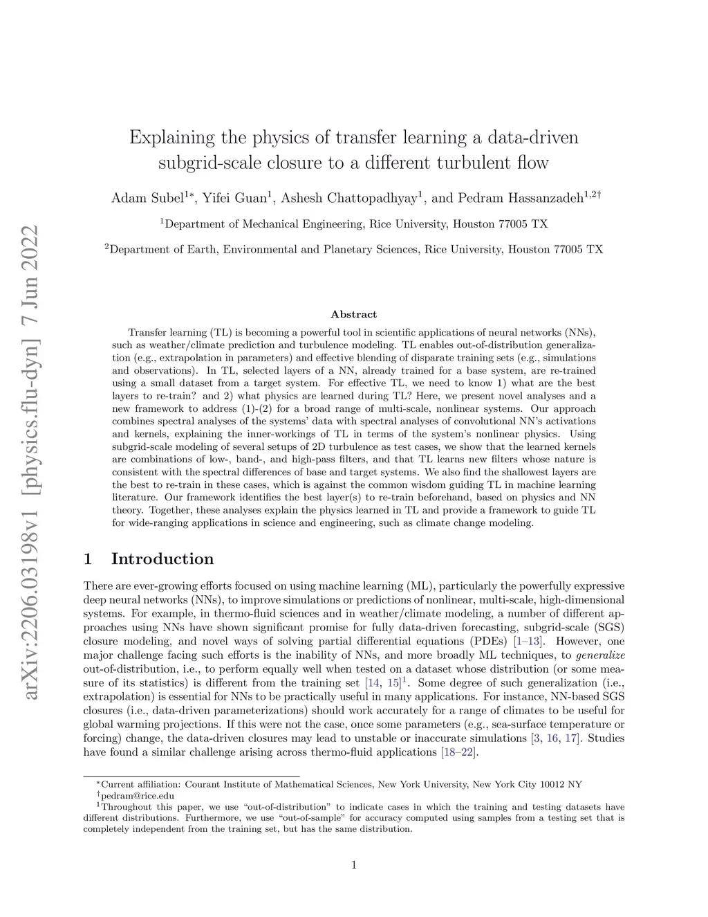 Explaining the physics of transfer learning a data-driven subgrid-scale