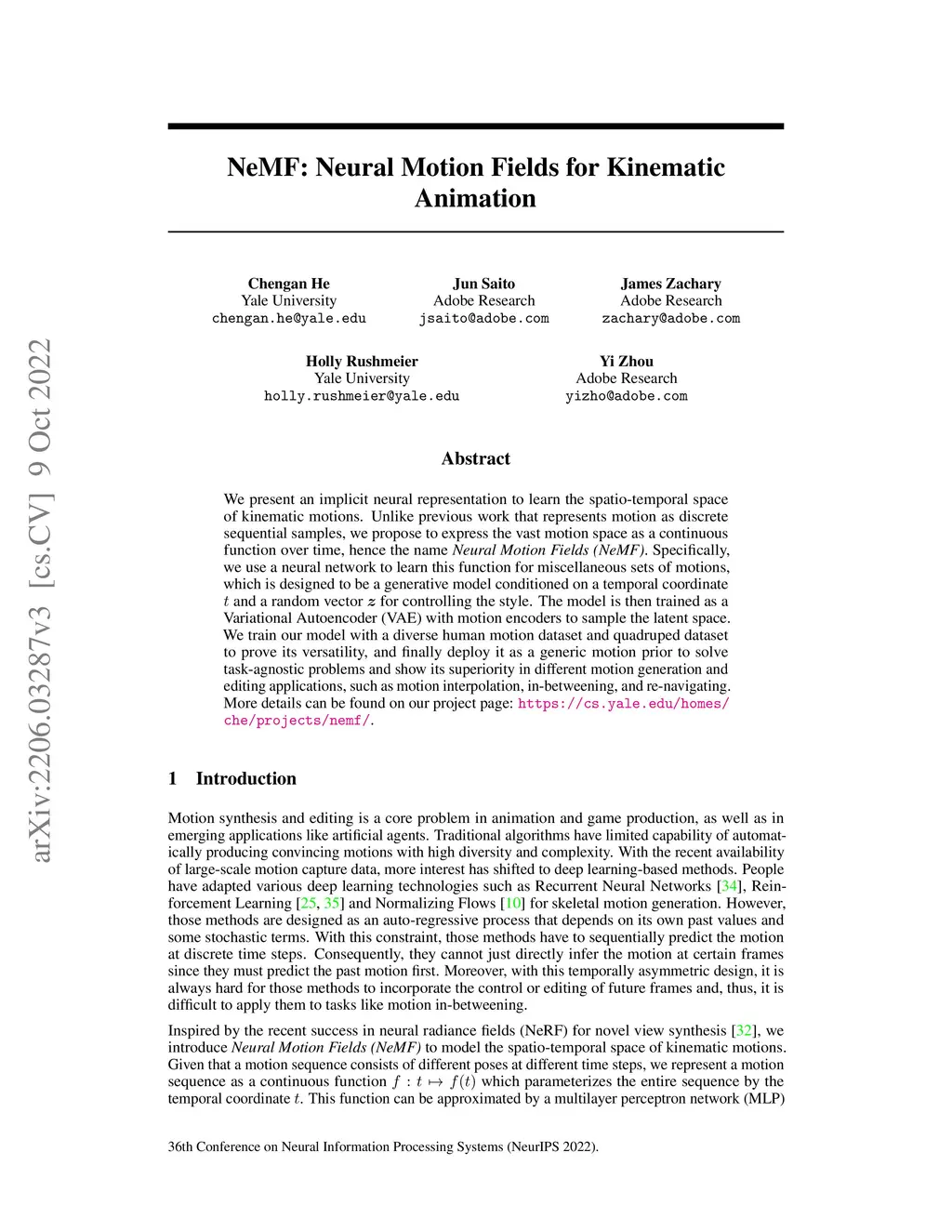NeMF: Neural Motion Fields for Kinematic Animation