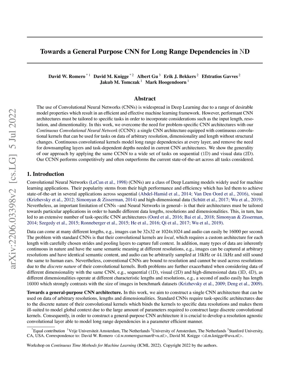 Towards a General Purpose CNN for Long Range Dependencies in D