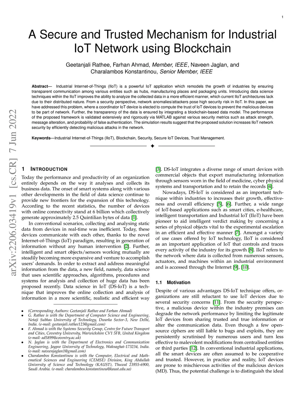 A Secure and Trusted Mechanism for Industrial IoT Network using