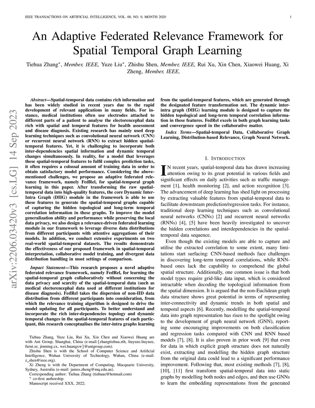 An Adaptive Federated Relevance Framework for Spatial Temporal Graph