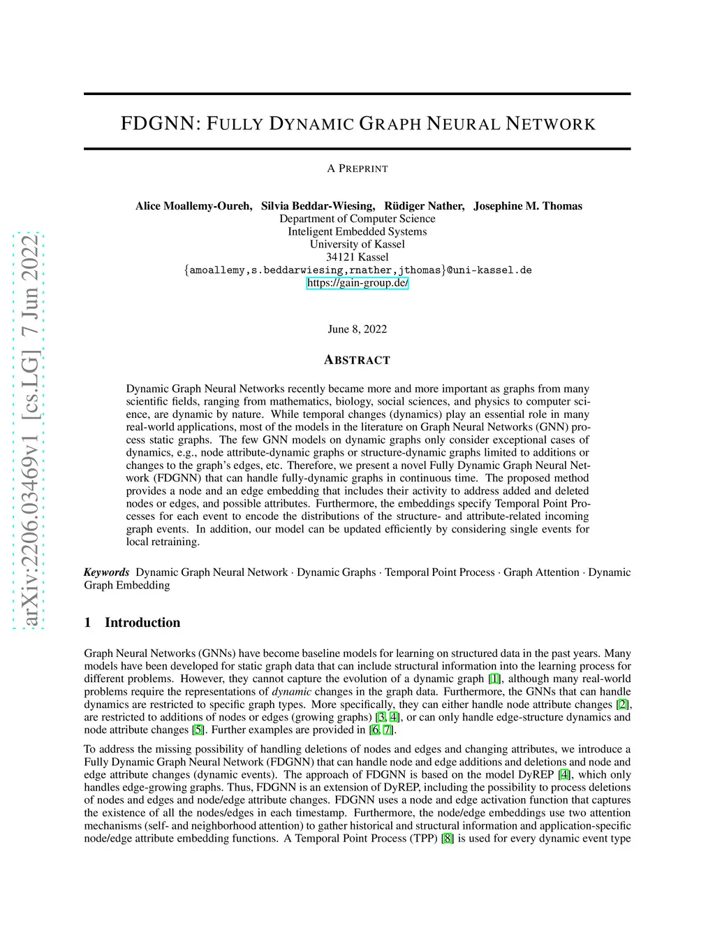 Dynamic Graph Neural Networks recently became more and more important as graphs from many scientific fields, ranging from mathematics, biology, social sciences, and physics to computer science, are dynamic by nature. While temporal changes (dynamics) play an essential role in many real-world applications, most of the models in the literature on Graph Neural Networks (GNN) process static graphs. The few GNN models on dynamic graphs only consider exceptional cases of dynamics, e.g., node attribute-dynamic graphs or structure-dynamic graphs limited to additions or changes to the graph's edges, etc. Therefore, we present a novel Fully Dynamic Graph Neural Network (FDGNN) that can handle fully-dynamic graphs in continuous time. The proposed method provides a node and an edge embedding that includes their activity to address added and deleted nodes or edges, and possible attributes. Furthermore, the embeddings specify Temporal Point Processes for each event to encode the distributions of the structure- and attribute-related incoming graph events. In addition, our model can be updated efficiently by considering single events for local retraining.