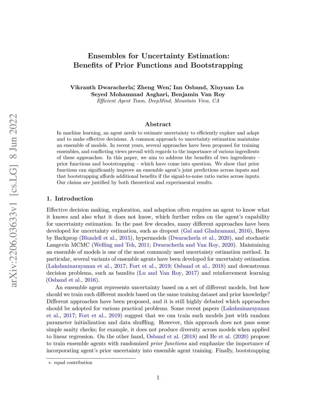 In machine learning, an agent needs to estimate uncertainty to efficiently explore and adapt and to make effective decisions. A common approach to uncertainty estimation maintains an ensemble of models. In recent years, several approaches have been proposed for training ensembles, and conflicting views prevail with regards to the importance of various ingredients of these approaches. In this paper, we aim to address the benefits of two ingredients -- prior functions and bootstrapping -- which have come into question. We show that prior functions can significantly improve an ensemble agent's joint predictions across inputs and that bootstrapping affords additional benefits if the signal-to-noise ratio varies across inputs. Our claims are justified by both theoretical and experimental results.