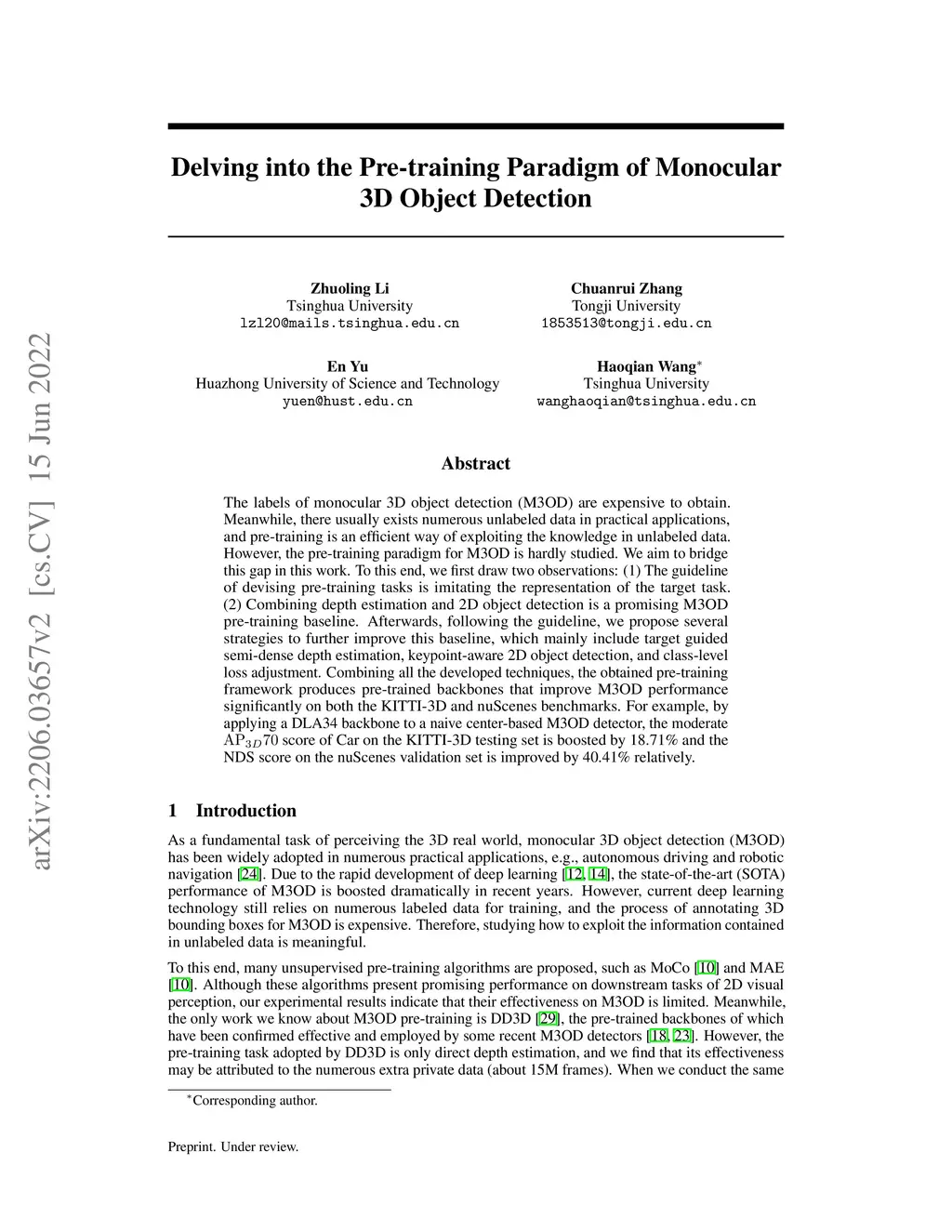 Delving into the Pre-training Paradigm of Monocular 3D Object Detection