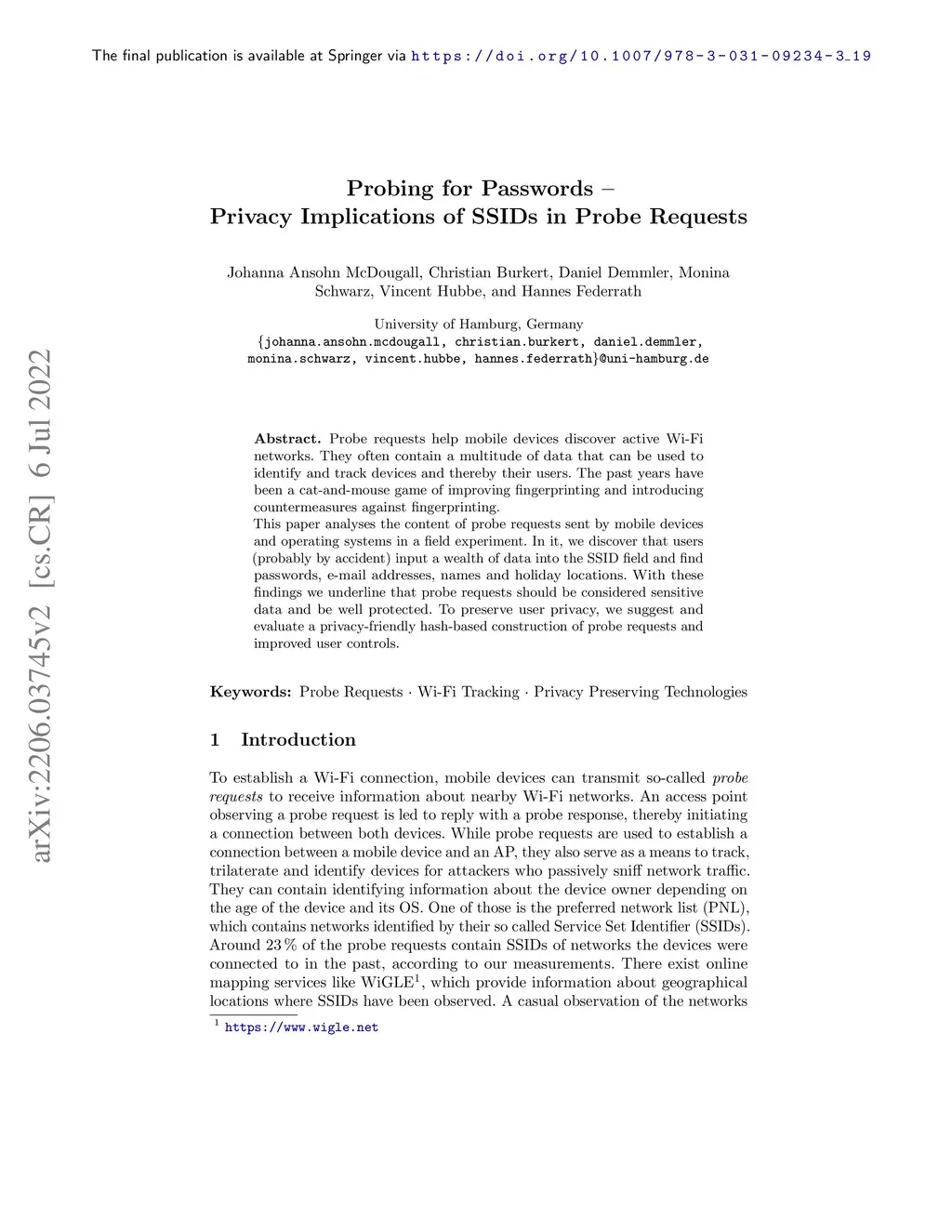 Probing for Passwords -- Privacy Implications of SSIDs in Probe Requests