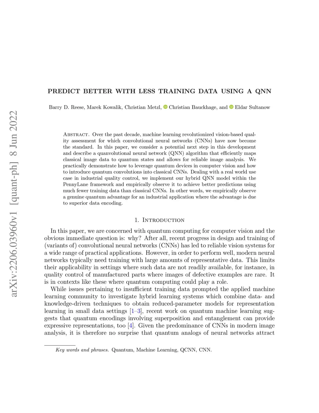 Predict better with less training data using a QNN