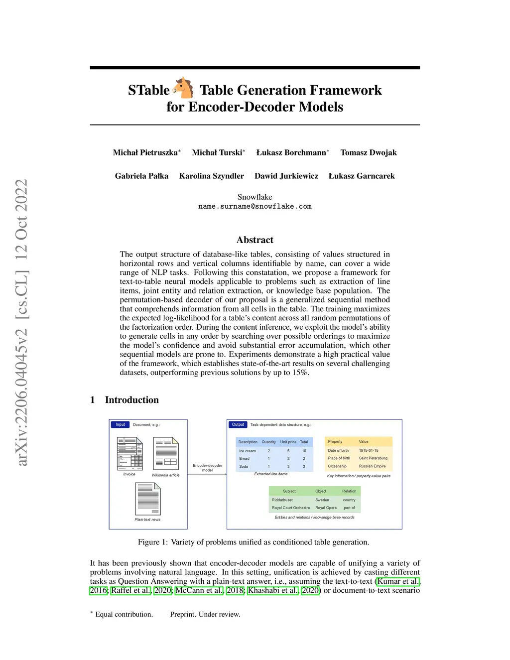 STable: Table Generation Framework for Encoder-Decoder Models