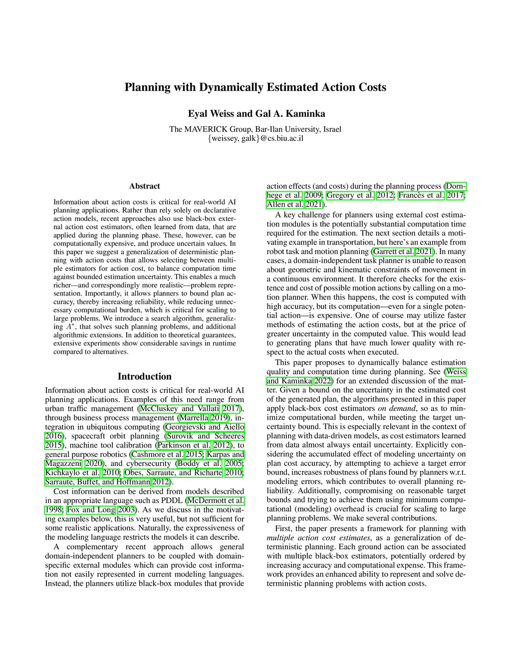 Planning with Dynamically Estimated Action Costs