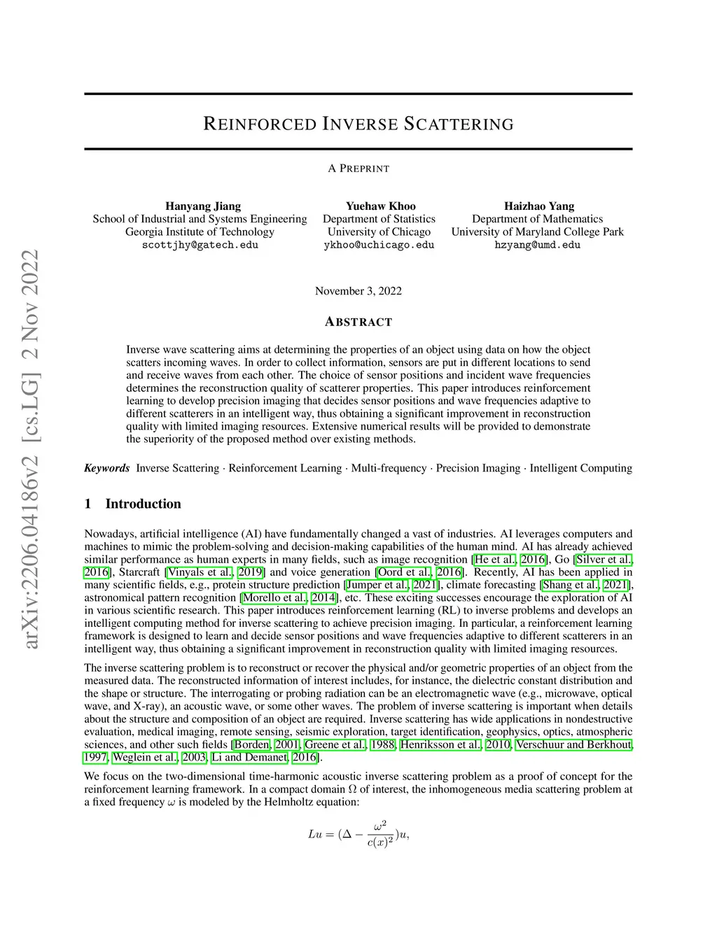 Inverse wave scattering aims at determining the properties of an object using data on how the object scatters incoming waves. In order to collect information, sensors are put in different locations to send and receive waves from each other. The choice of sensor positions and incident wave frequencies determines the reconstruction quality of scatterer properties. This paper introduces reinforcement learning to develop precision imaging that decides sensor positions and wave frequencies adaptive to different scatterers in an intelligent way, thus obtaining a significant improvement in reconstruction quality with limited imaging resources. Extensive numerical results will be provided to demonstrate the superiority of the proposed method over existing methods.