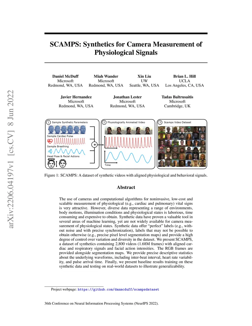 SCAMPS: Synthetics for Camera Measurement of Physiological Signals