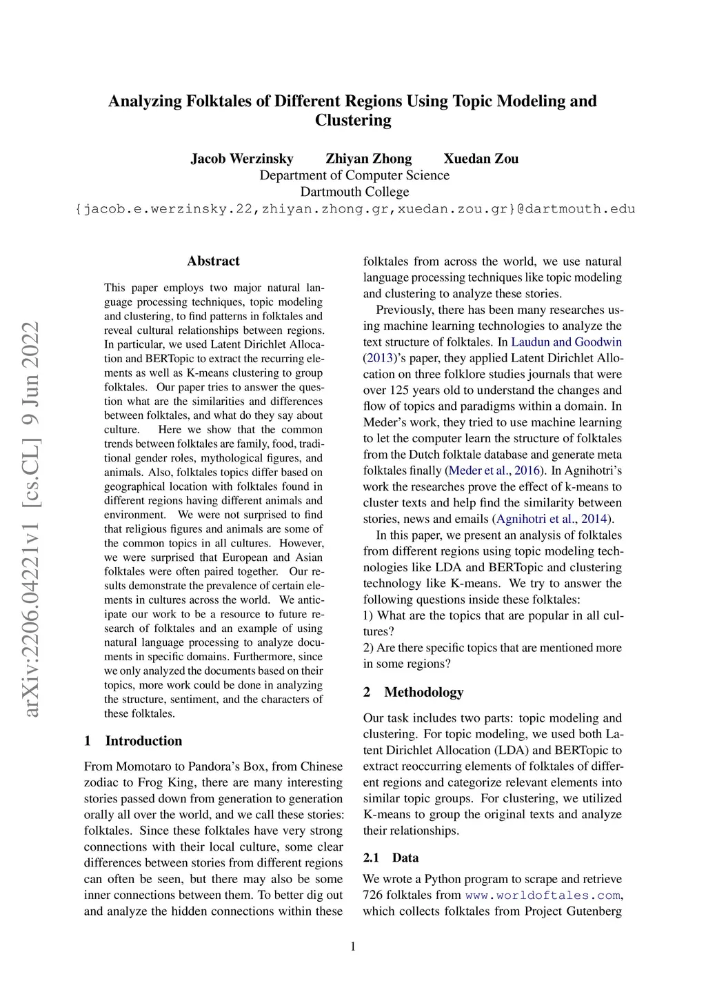 Analyzing Folktales of Different Regions Using Topic Modeling and