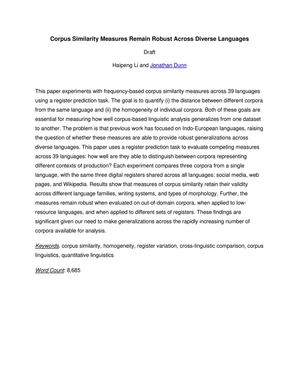 Corpus Similarity Measures Remain Robust Across Diverse Languages