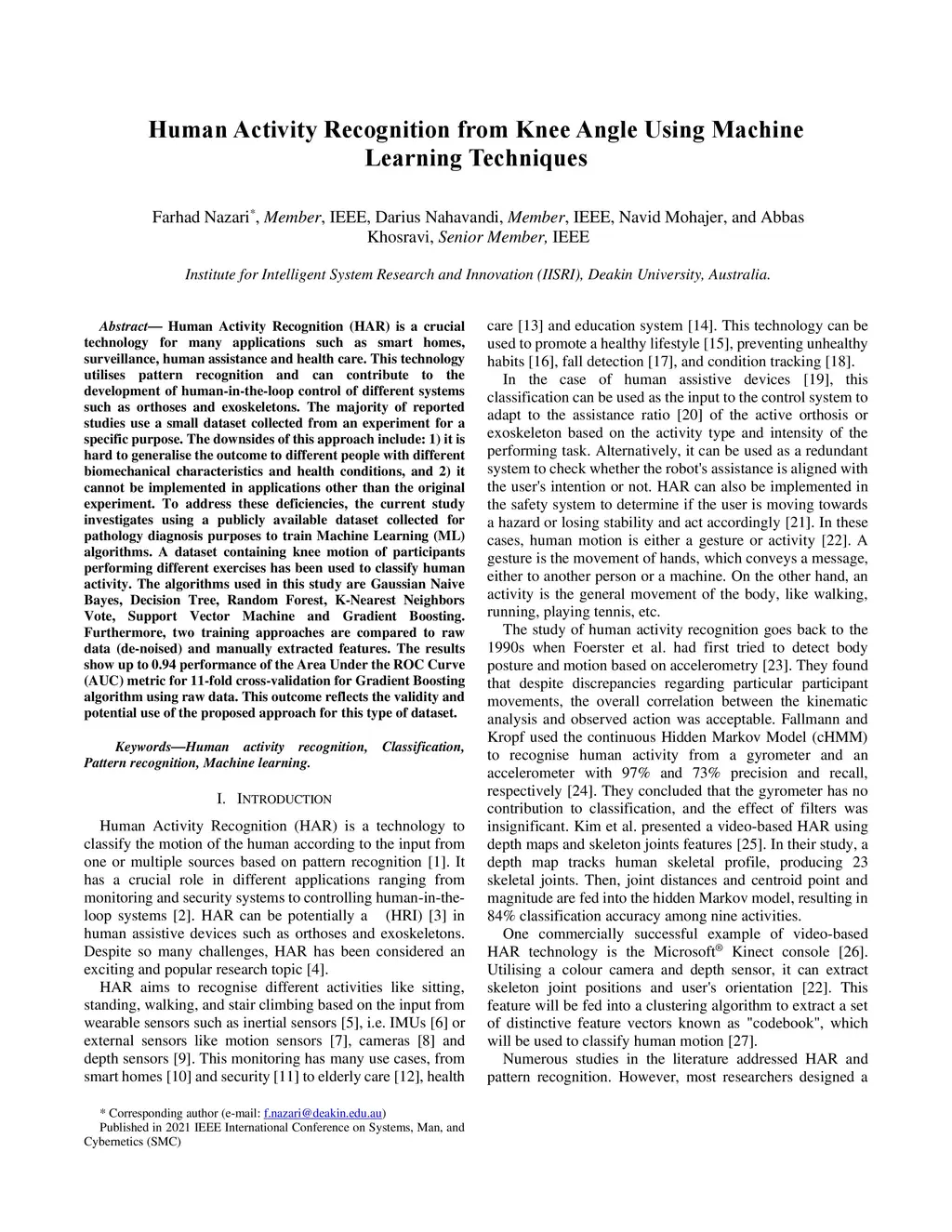 Human Activity Recognition from Knee Angle Using Machine Learning