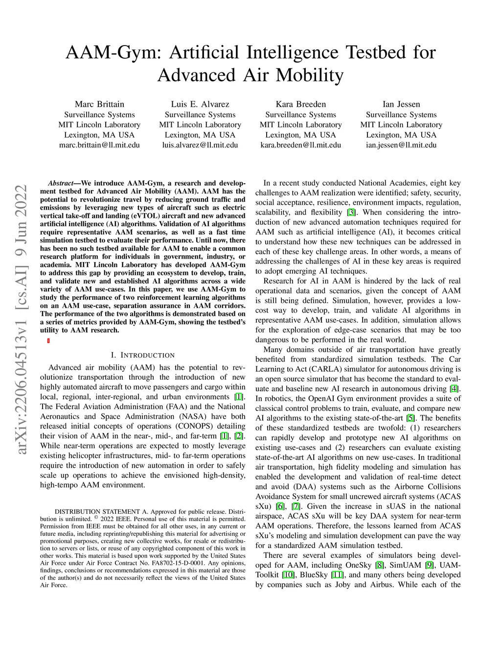 AAM-Gym: Artificial Intelligence Testbed for Advanced Air Mobility