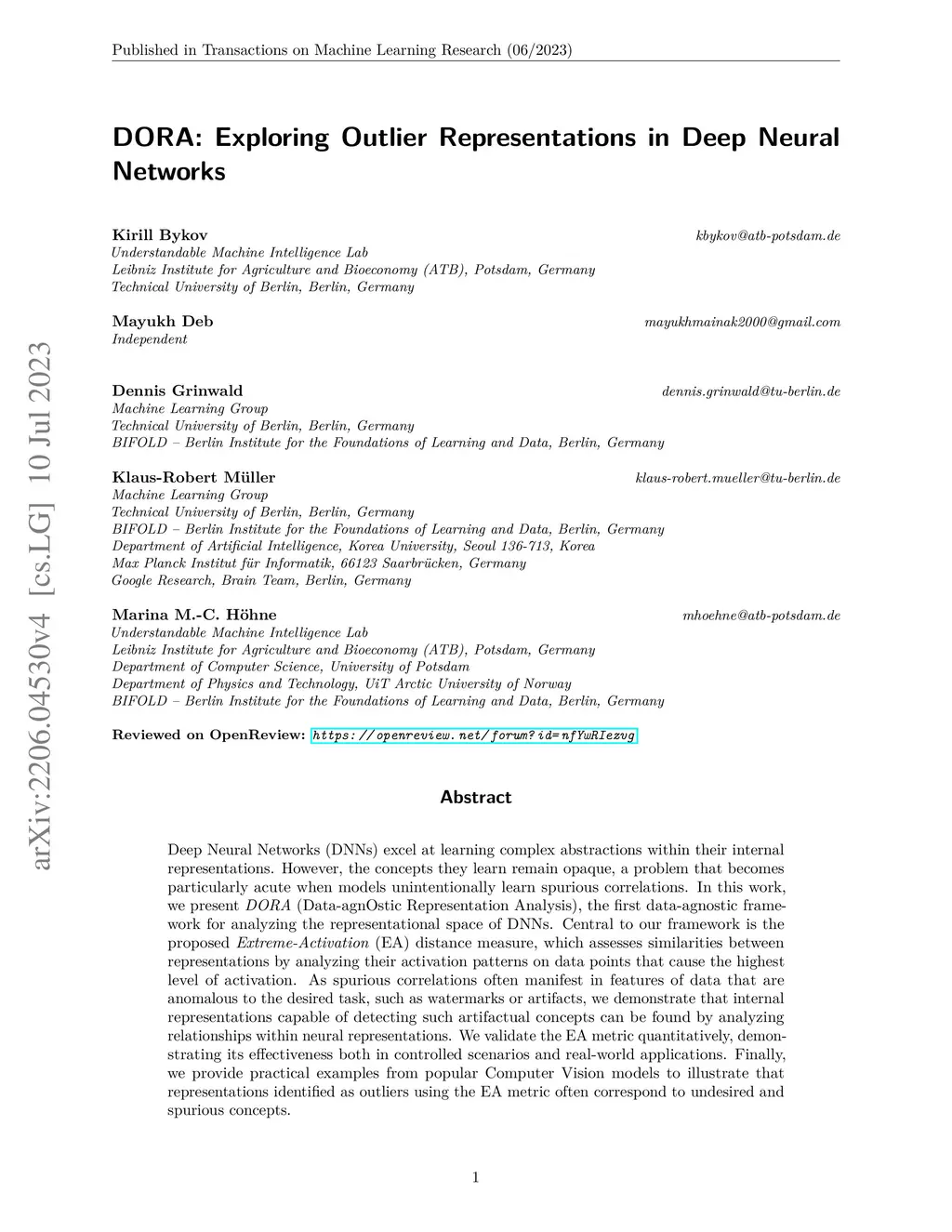 DORA: Exploring Outlier Representations in Deep Neural Networks