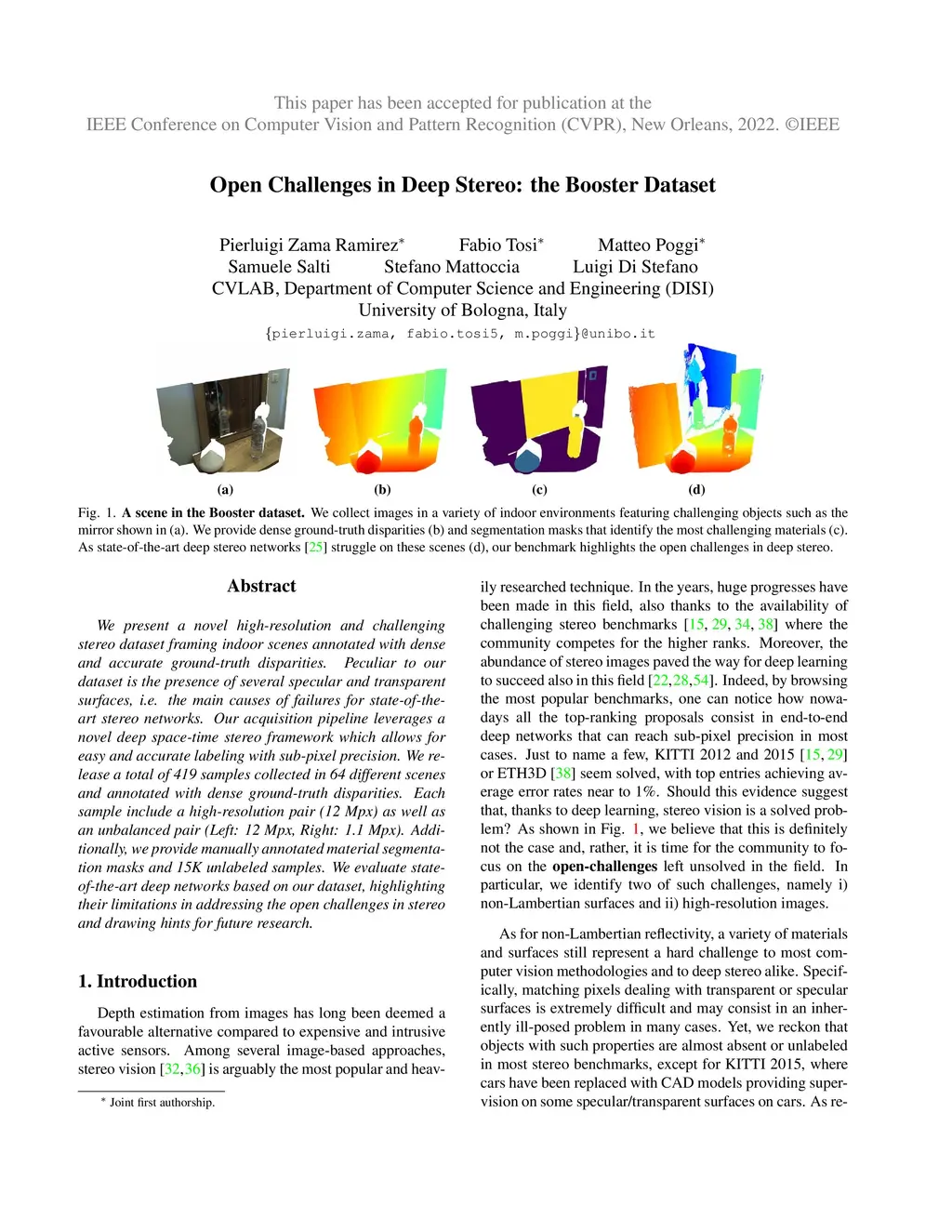 We present a novel high-resolution and challenging stereo dataset framing indoor scenes annotated with dense and accurate ground-truth disparities. Peculiar to our dataset is the presence of several specular and transparent surfaces, i.e. the main causes of failures for state-of-the-art stereo networks. Our acquisition pipeline leverages a novel deep space-time stereo framework which allows for easy and accurate labeling with sub-pixel precision. We release a total of 419 samples collected in 64 different scenes and annotated with dense ground-truth disparities. Each sample include a high-resolution pair (12 Mpx) as well as an unbalanced pair (Left: 12 Mpx, Right: 1.1 Mpx). Additionally, we provide manually annotated material segmentation masks and 15K unlabeled samples. We evaluate state-of-the-art deep networks based on our dataset, highlighting their limitations in addressing the open challenges in stereo and drawing hints for future research.