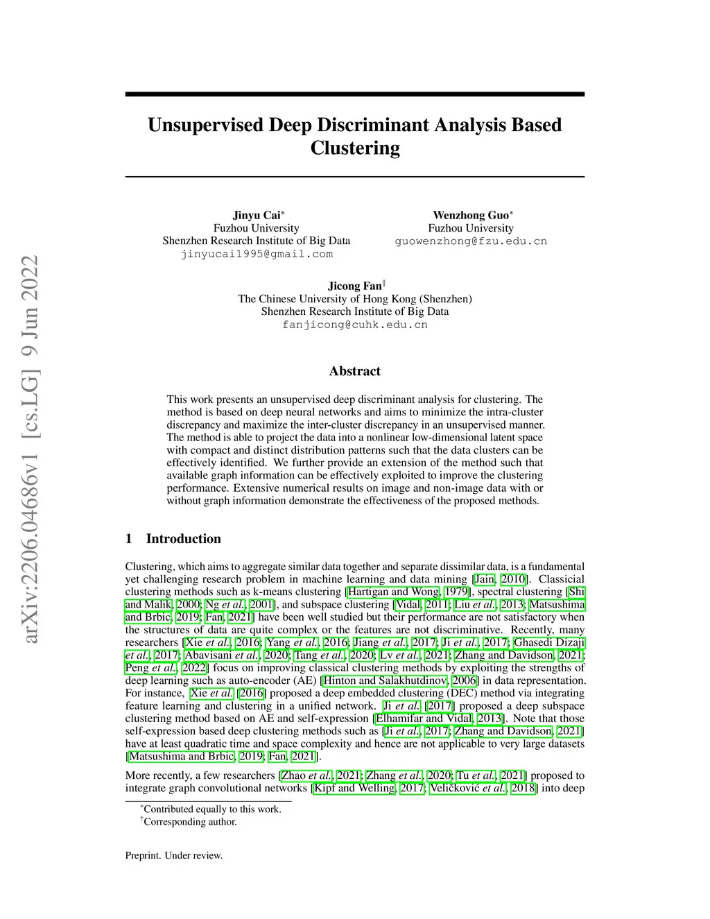 Unsupervised Deep Discriminant Analysis Based Clustering