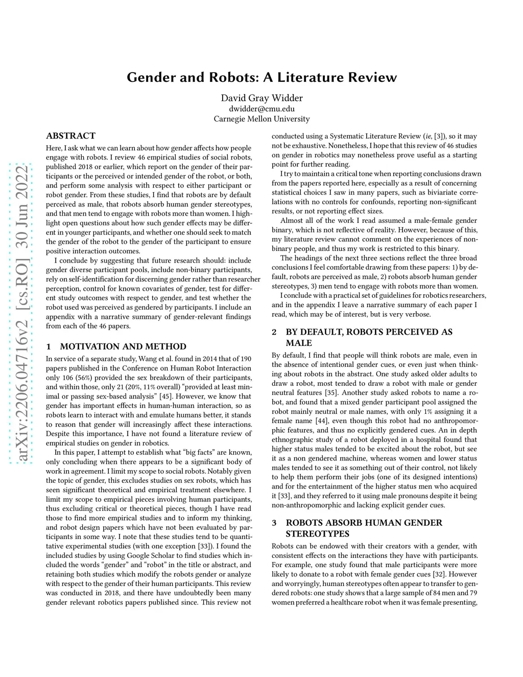 Gender and Robots: A Literature Review