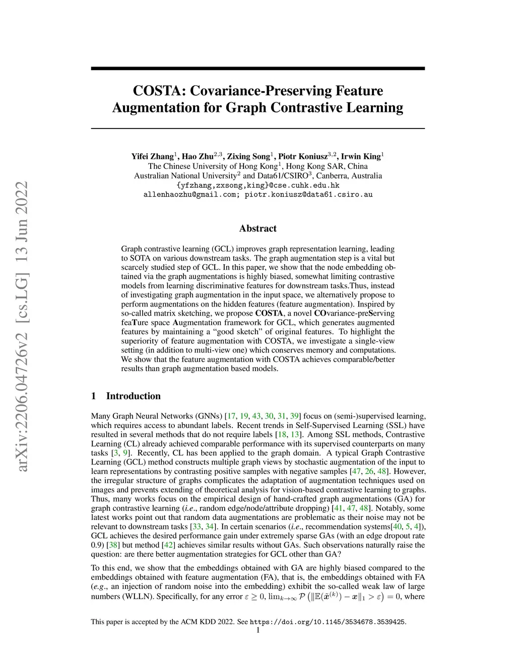 COSTA: Covariance-Preserving Feature Augmentation for Graph Contrastive