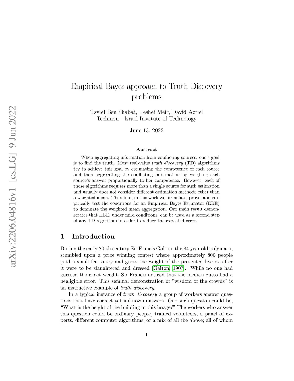 Empirical Bayes approach to Truth Discovery problems