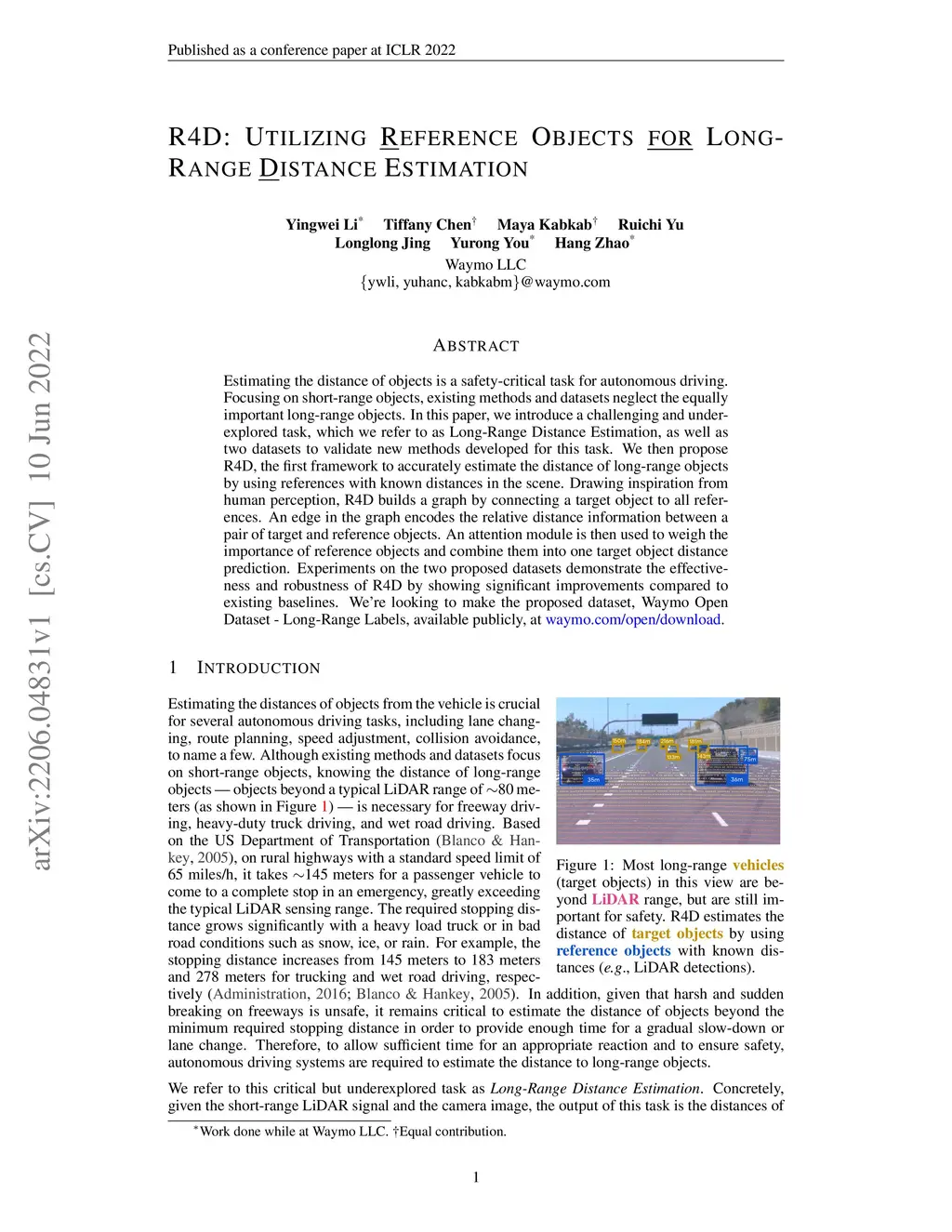 Estimating the distance of objects is a safety-critical task for autonomous driving. Focusing on short-range objects, existing methods and datasets neglect the equally important long-range objects. In this paper, we introduce a challenging and under-explored task, which we refer to as Long-Range Distance Estimation, as well as two datasets to validate new methods developed for this task. We then proposeR4D, the first framework to accurately estimate the distance of long-range objects by using references with known distances in the scene. Drawing inspiration from human perception, R4D builds a graph by connecting a target object to all references. An edge in the graph encodes the relative distance information between a pair of target and reference objects. An attention module is then used to weigh the importance of reference objects and combine them into one target object distance prediction. Experiments on the two proposed datasets demonstrate the effectiveness and robustness of R4D by showing significant improvements compared to existing baselines. We are looking to make the proposed dataset, Waymo OpenDataset - Long-Range Labels, available publicly at waymo.com/open/download.