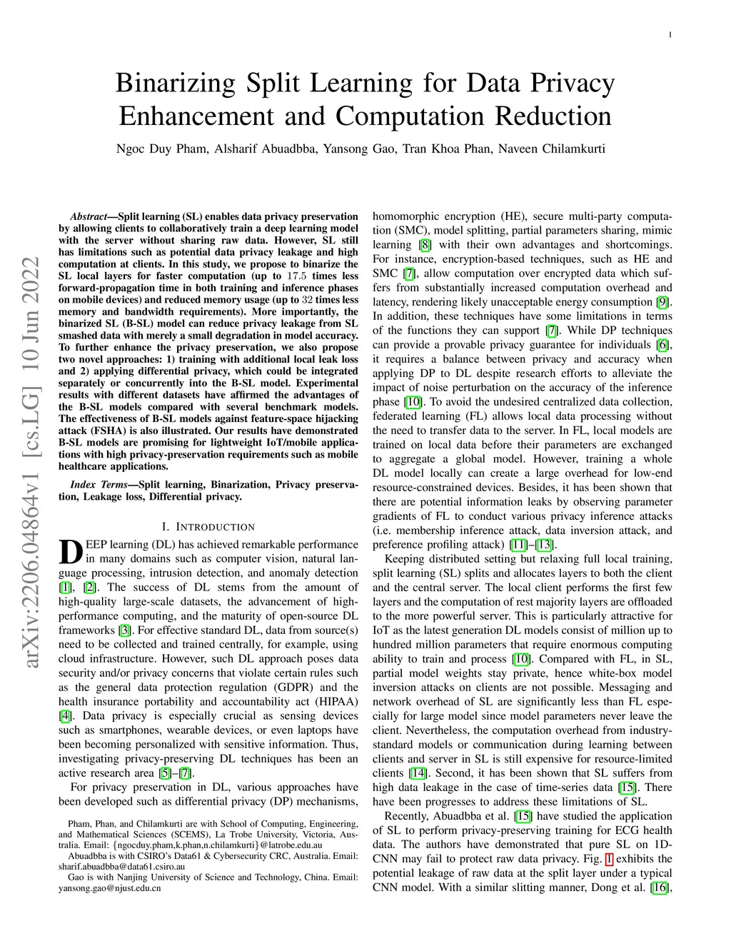 Binarizing Split Learning for Data Privacy Enhancement and Computation