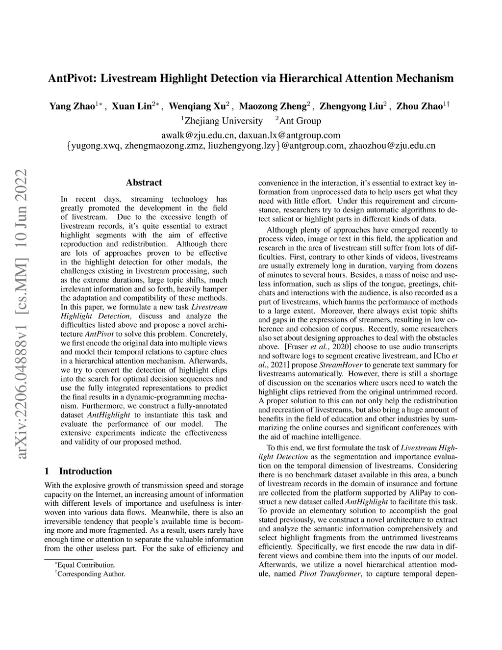 AntPivot: Livestream Highlight Detection via Hierarchical Attention