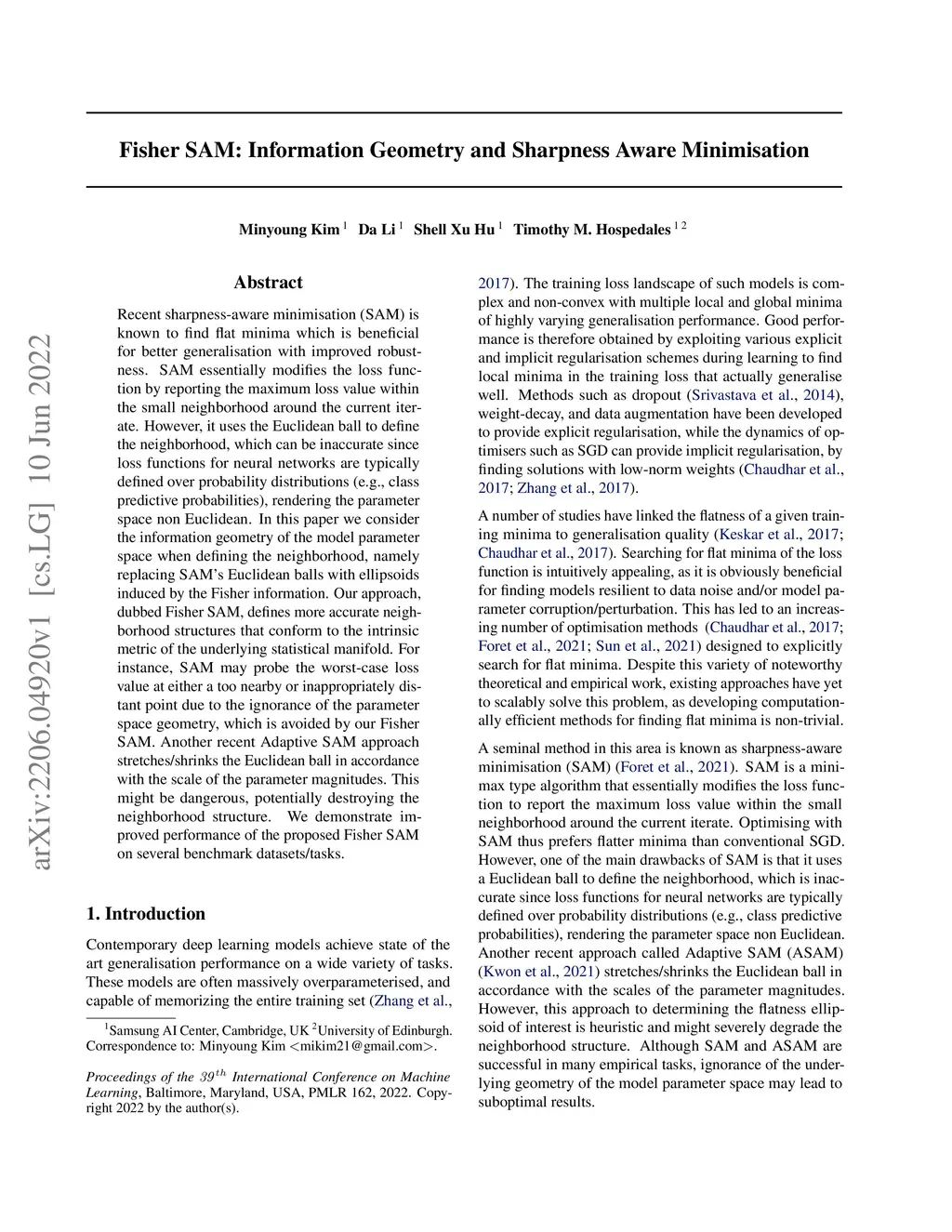 Fisher SAM: Information Geometry and Sharpness Aware Minimisation