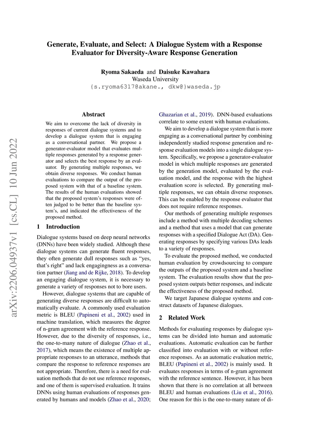 Generate, Evaluate, and Select: A Dialogue System with a Response