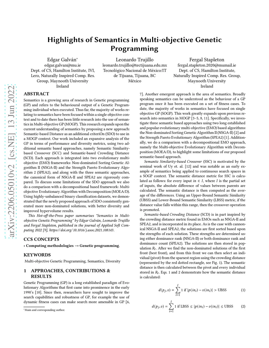 Highlights of Semantics in Multi-objective Genetic Programming