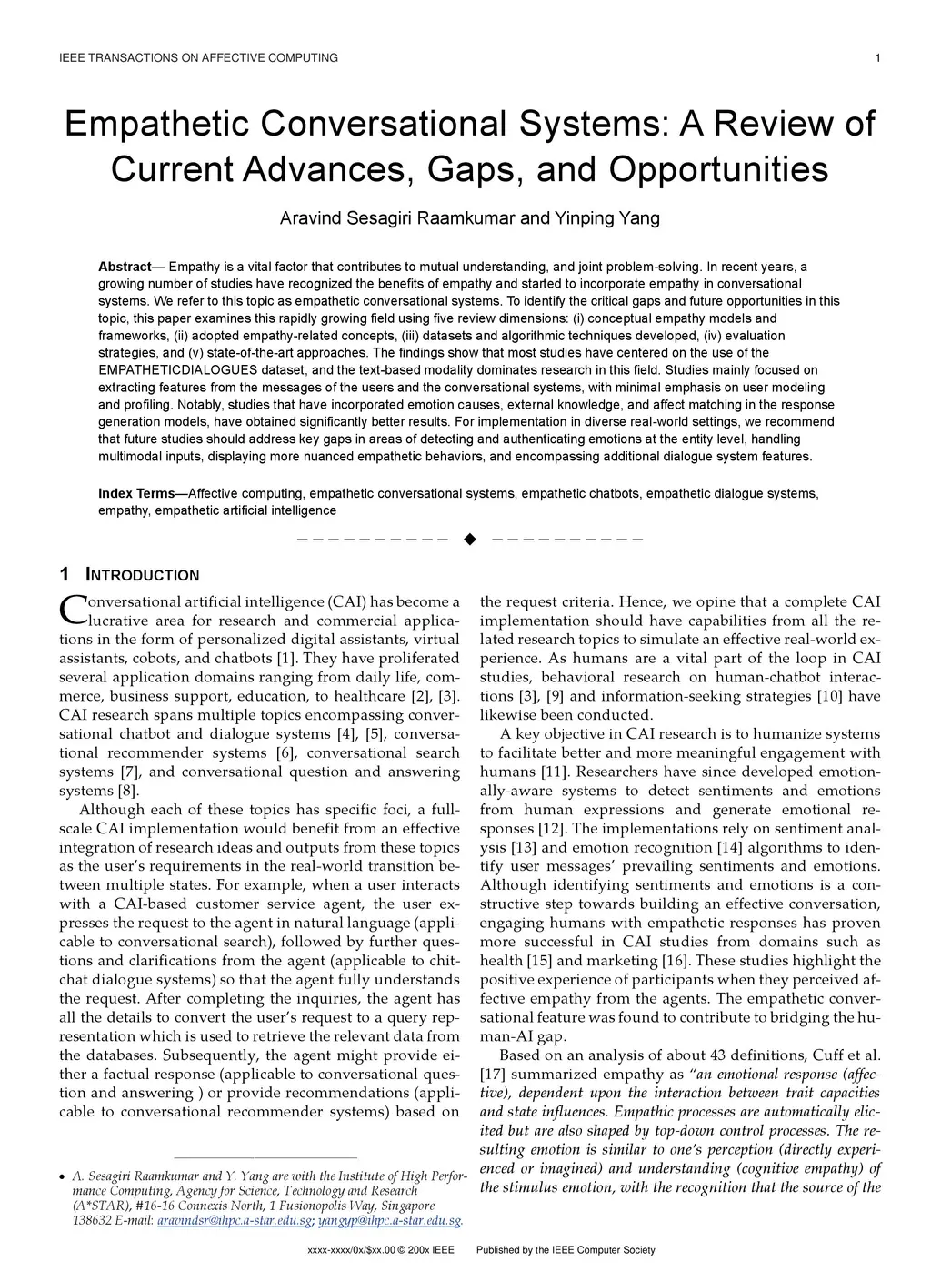 Empathetic Conversational Systems: A Review of Current Advances, Gaps,