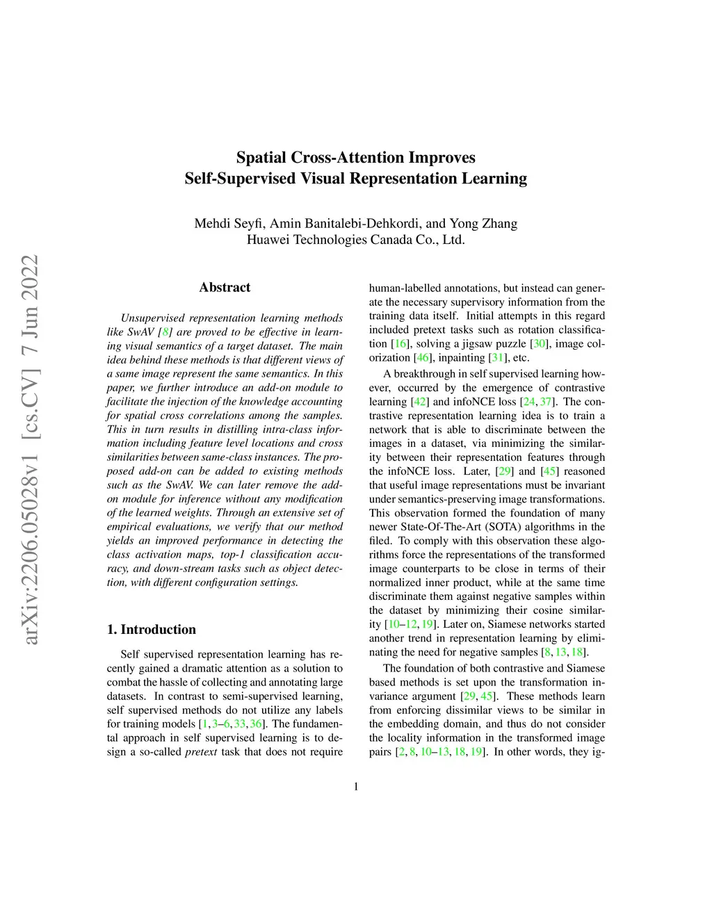 Spatial Cross-Attention Improves Self-Supervised Visual Representation