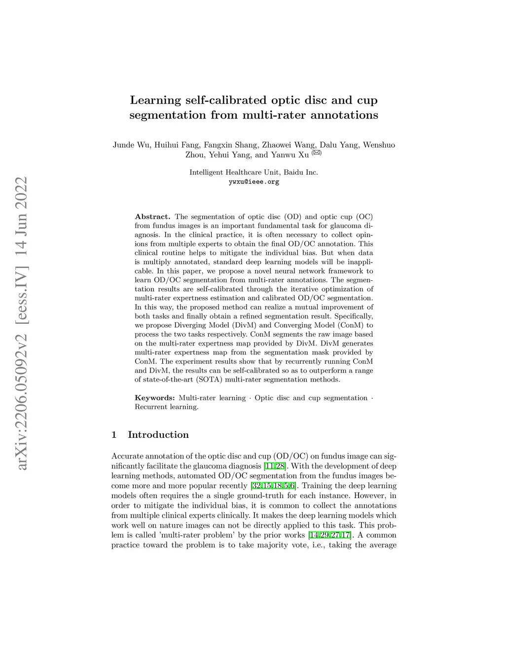 Learning self-calibrated optic disc and cup segmentation from