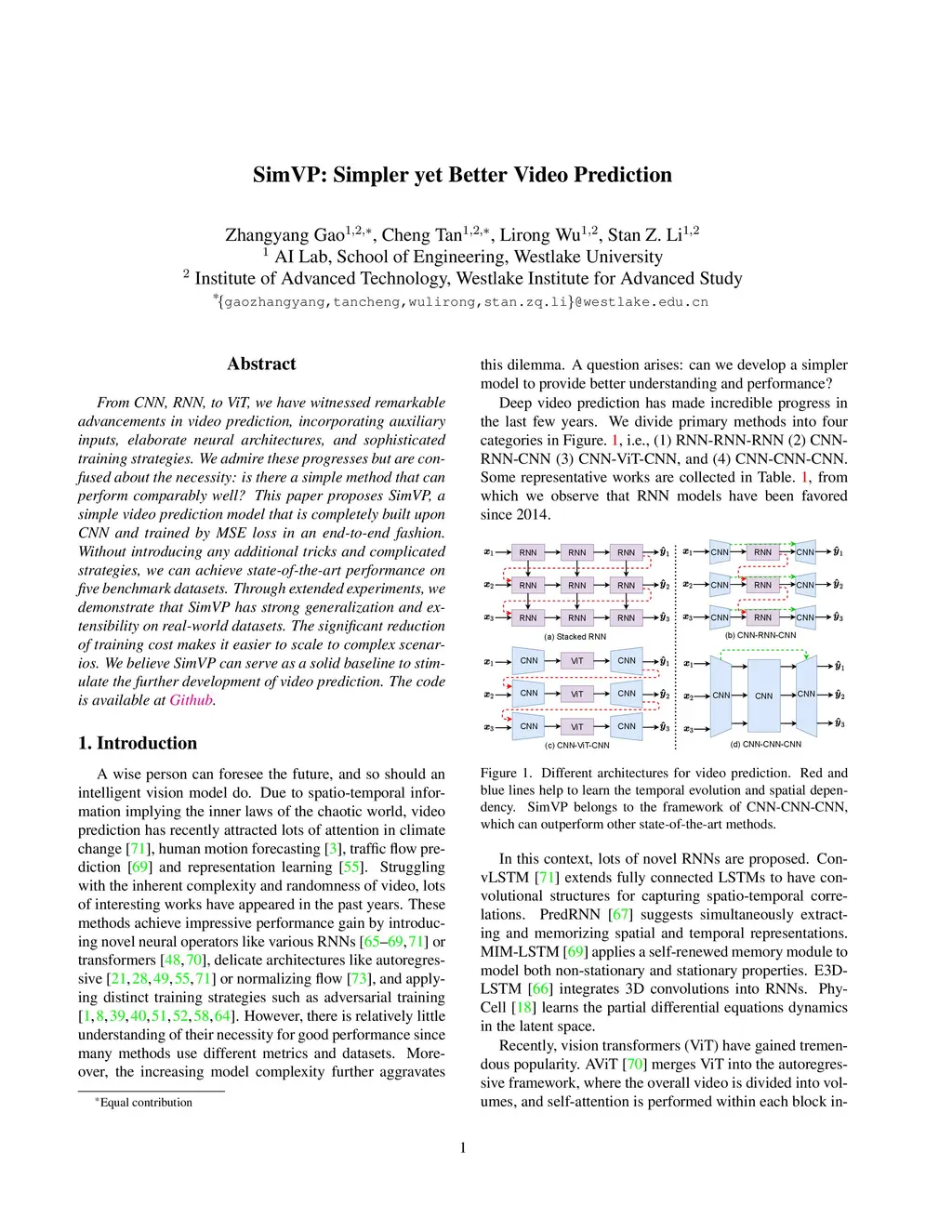 SimVP: Simpler yet Better Video Prediction