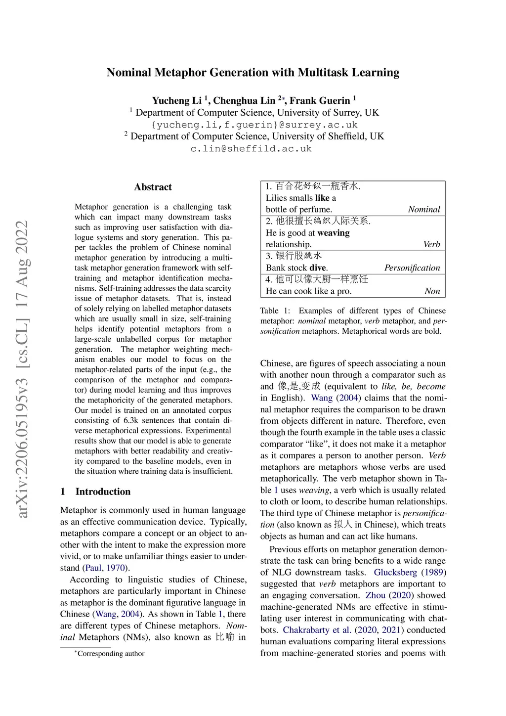 Nominal Metaphor Generation with Multitask Learning