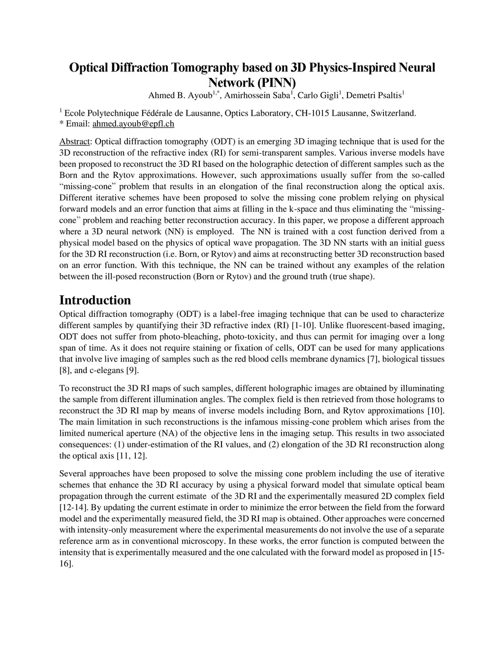 Optical Diffraction Tomography based on 3D Physics-Inspired Neural
