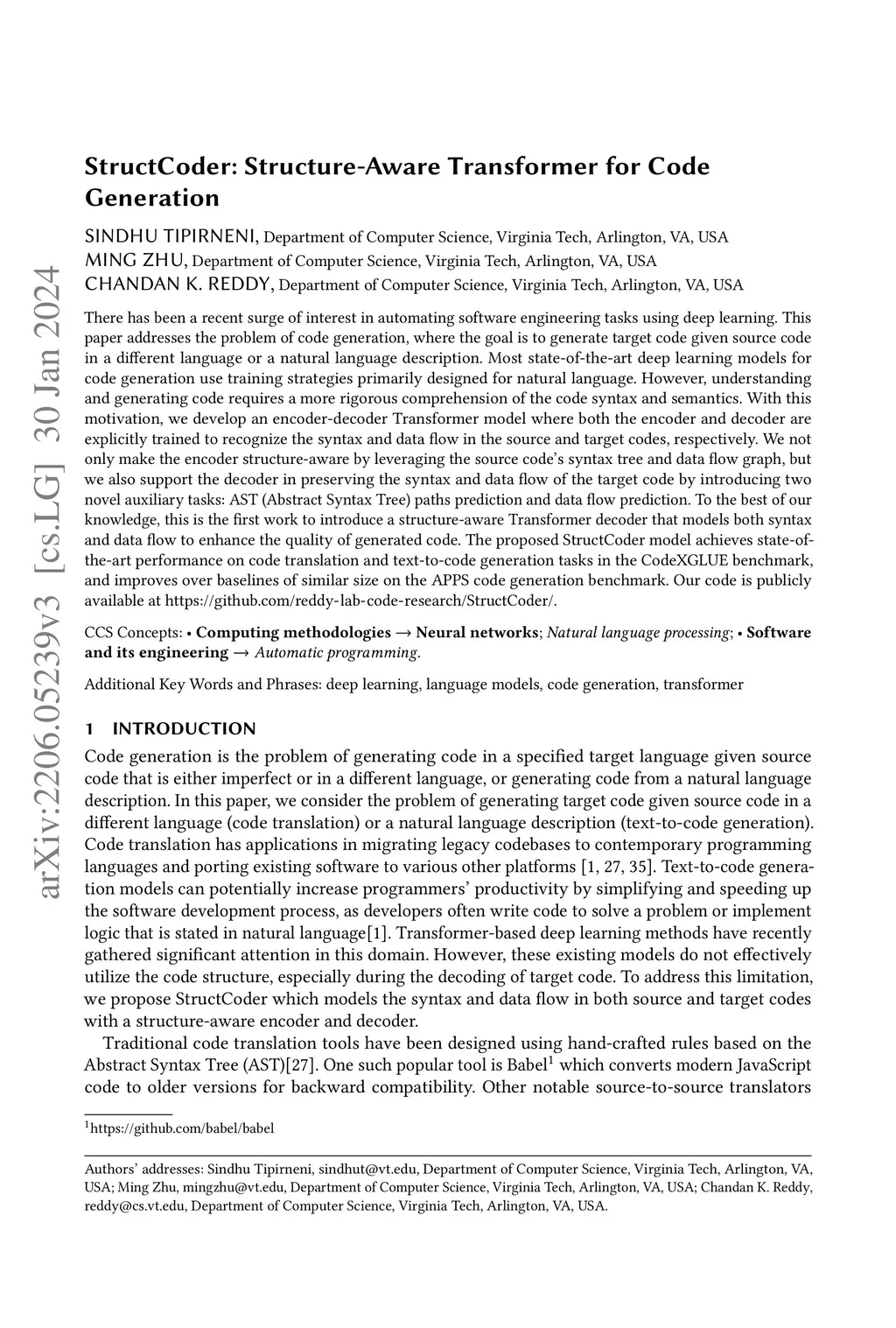 There has been a recent surge of interest in automating software engineering tasks using deep learning. This paper addresses the problem of code generation, where the goal is to generate target code given source code in a different language or a natural language description. Most state-of-the-art deep learning models for code generation use training strategies primarily designed for natural language. However, understanding and generating code requires a more rigorous comprehension of the code syntax and semantics. With this motivation, we develop an encoder-decoder Transformer model where both the encoder and decoder are explicitly trained to recognize the syntax and data flow in the source and target codes, respectively. We not only make the encoder structure-aware by leveraging the source code's syntax tree and data flow graph, but we also support the decoder in preserving the syntax and data flow of the target code by introducing two novel auxiliary tasks: AST (Abstract Syntax Tree) paths prediction and data flow prediction. To the best of our knowledge, this is the first work to introduce a structure-aware Transformer decoder that models both syntax and data flow to enhance the quality of generated code. The proposed StructCoder model achieves state-of-the-art performance on code translation and text-to-code generation tasks in the CodeXGLUE benchmark, and improves over baselines of similar size on the APPS code generation benchmark. Our code is publicly available at https://github.com/reddy-lab-code-research/StructCoder/.
