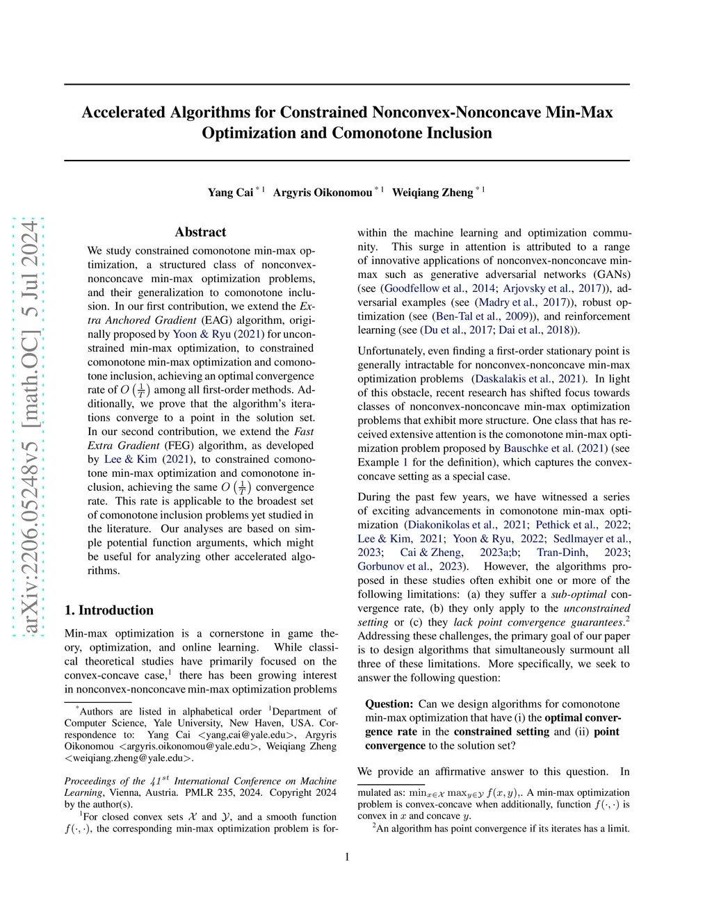 We study constrained comonotone min-max optimization, a structured class of nonconvex-nonconcave min-max optimization problems, and their generalization to comonotone inclusion. In our first contribution, we extend the Extra Anchored Gradient (EAG) algorithm, originally proposed by Yoon and Ryu (2021) for unconstrained min-max optimization, to constrained comonotone min-max optimization and comonotone inclusion, achieving an optimal convergence rate of among all first-order methods. Additionally, we prove that the algorithm's iterations converge to a point in the solution set. In our second contribution, we extend the Fast Extra Gradient (FEG) algorithm, as developed by Lee and Kim (2021), to constrained comonotone min-max optimization and comonotone inclusion, achieving the same convergence rate. This rate is applicable to the broadest set of comonotone inclusion problems yet studied in the literature. Our analyses are based on simple potential function arguments, which might be useful for analyzing other accelerated algorithms.