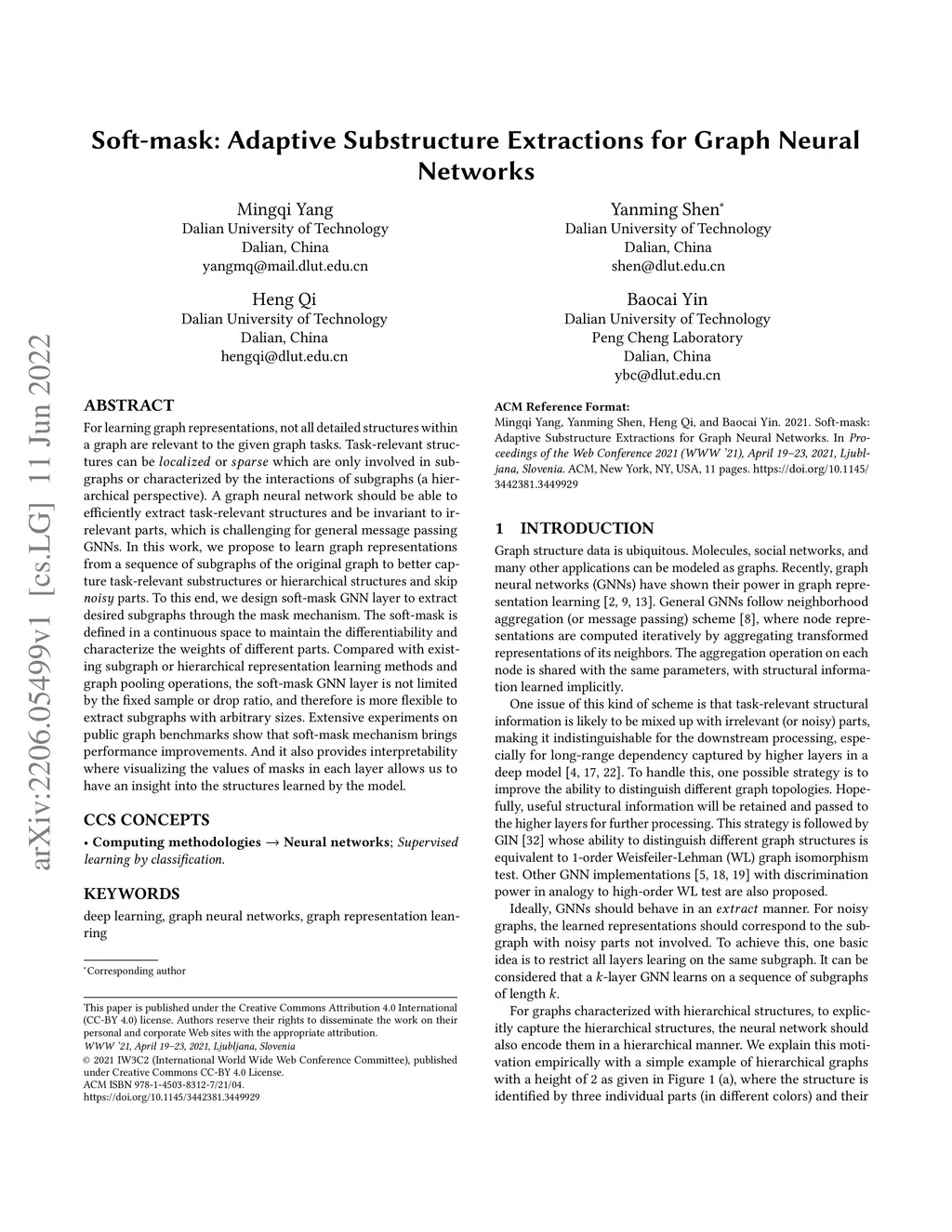 Soft-mask: Adaptive Substructure Extractions for Graph Neural Networks