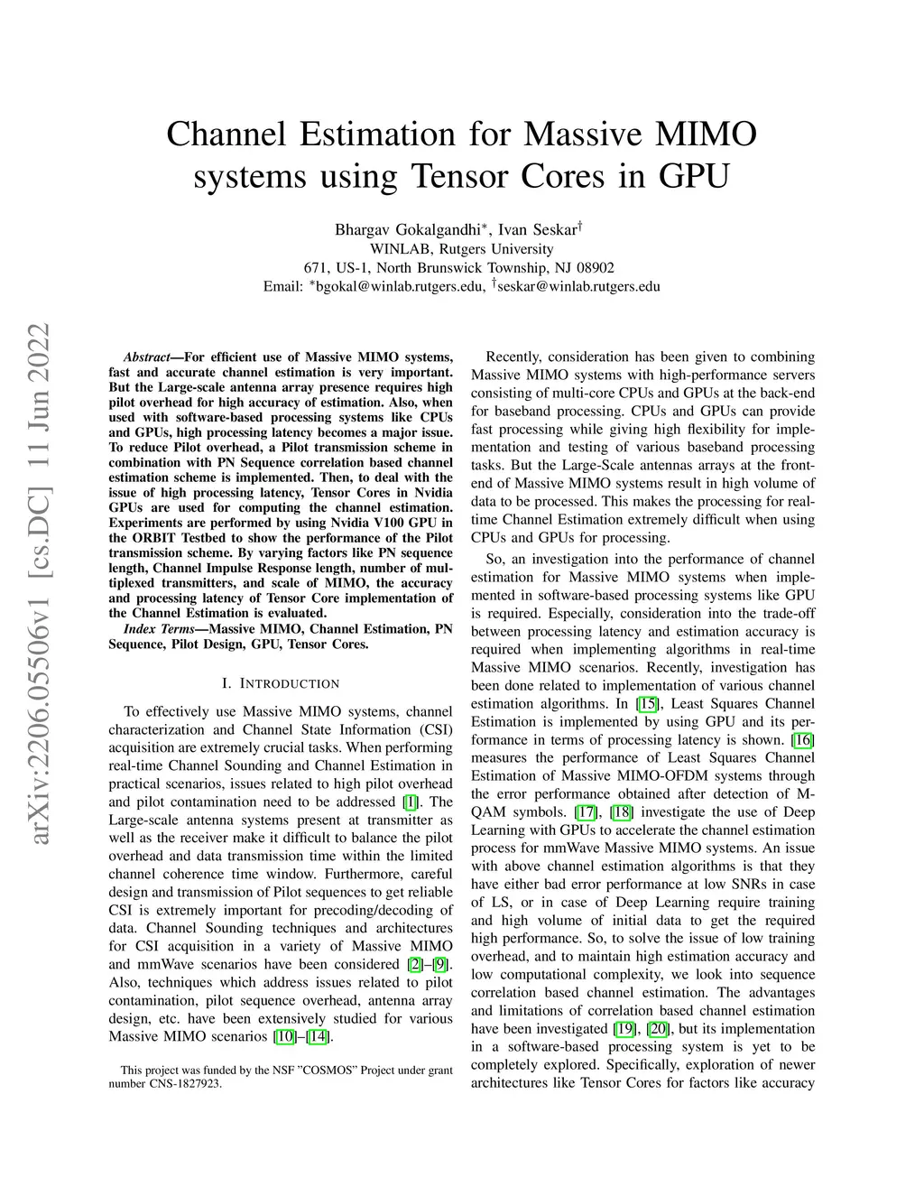 Channel Estimation for Massive MIMO systems using Tensor Cores in GPU