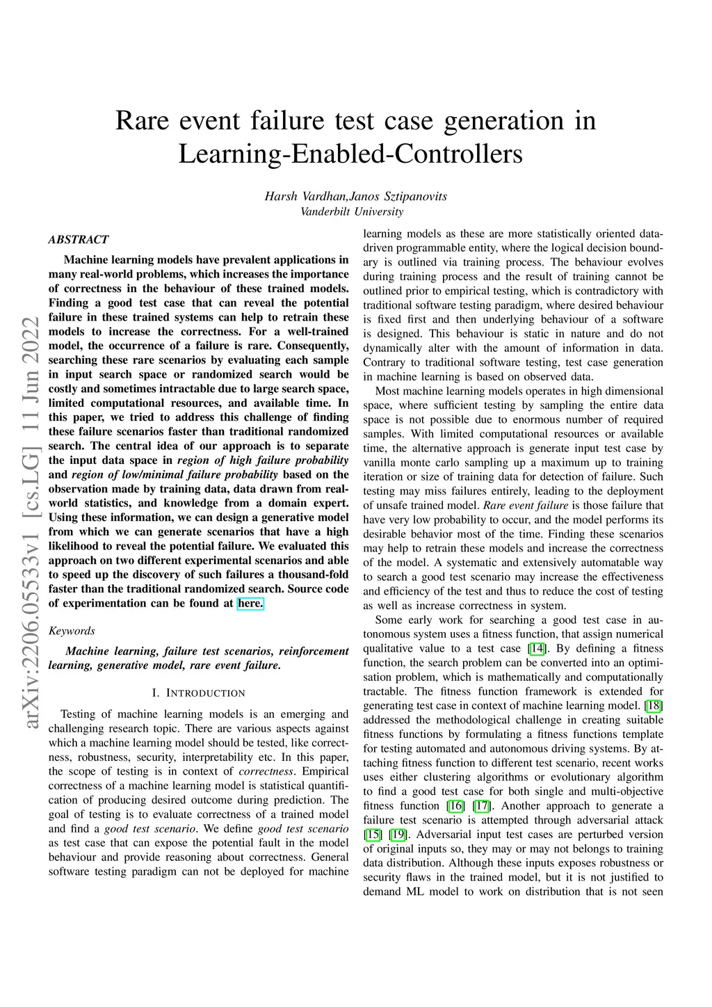 Rare event failure test case generation in Learning-Enabled-Controllers