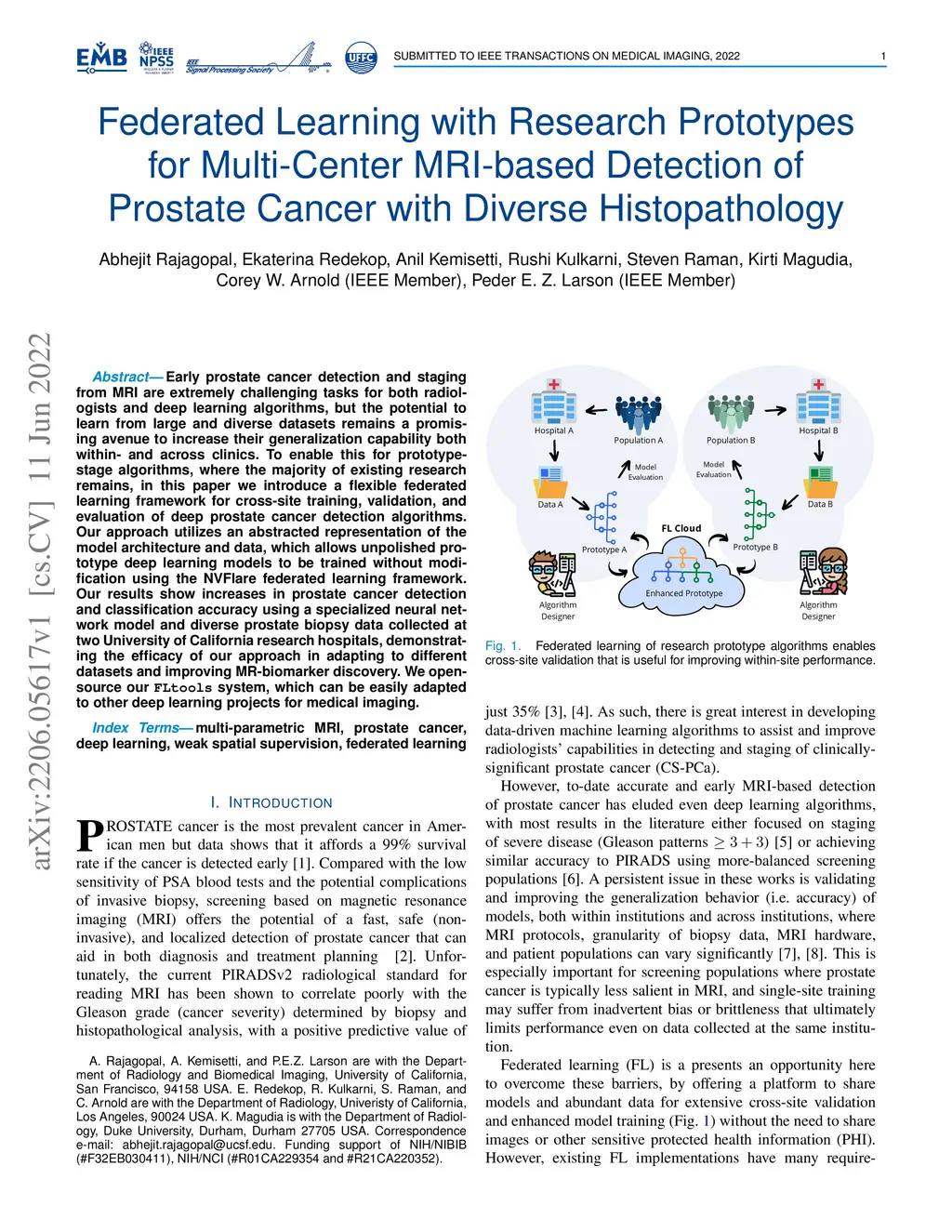 Early prostate cancer detection and staging from MRI are extremely challenging tasks for both radiologists and deep learning algorithms, but the potential to learn from large and diverse datasets remains a promising avenue to increase their generalization capability both within- and across clinics. To enable this for prototype-stage algorithms, where the majority of existing research remains, in this paper we introduce a flexible federated learning framework for cross-site training, validation, and evaluation of deep prostate cancer detection algorithms. Our approach utilizes an abstracted representation of the model architecture and data, which allows unpolished prototype deep learning models to be trained without modification using the NVFlare federated learning framework. Our results show increases in prostate cancer detection and classification accuracy using a specialized neural network model and diverse prostate biopsy data collected at two University of California research hospitals, demonstrating the efficacy of our approach in adapting to different datasets and improving MR-biomarker discovery. We open-source our FLtools system, which can be easily adapted to other deep learning projects for medical imaging.