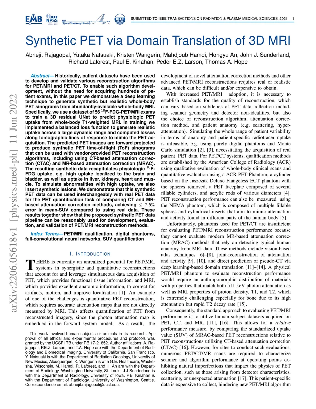 Synthetic PET via Domain Translation of 3D MRI